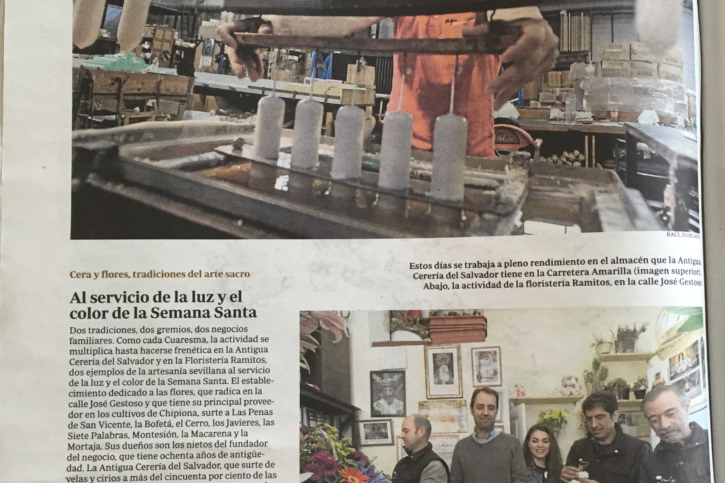 Articulo en ABC de Sevilla en el que dedican un articulo especial a los negocios tradicionales como las floristerías y cererías, en este caso la…